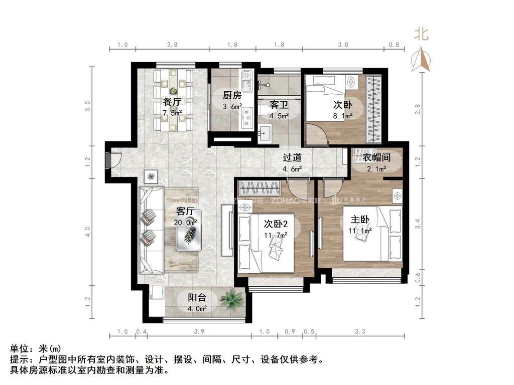朝向南北 建筑面积117㎡