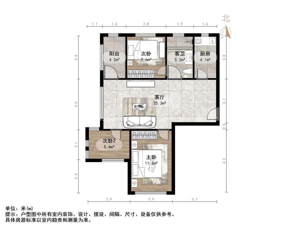 朝向南 建筑面积85㎡