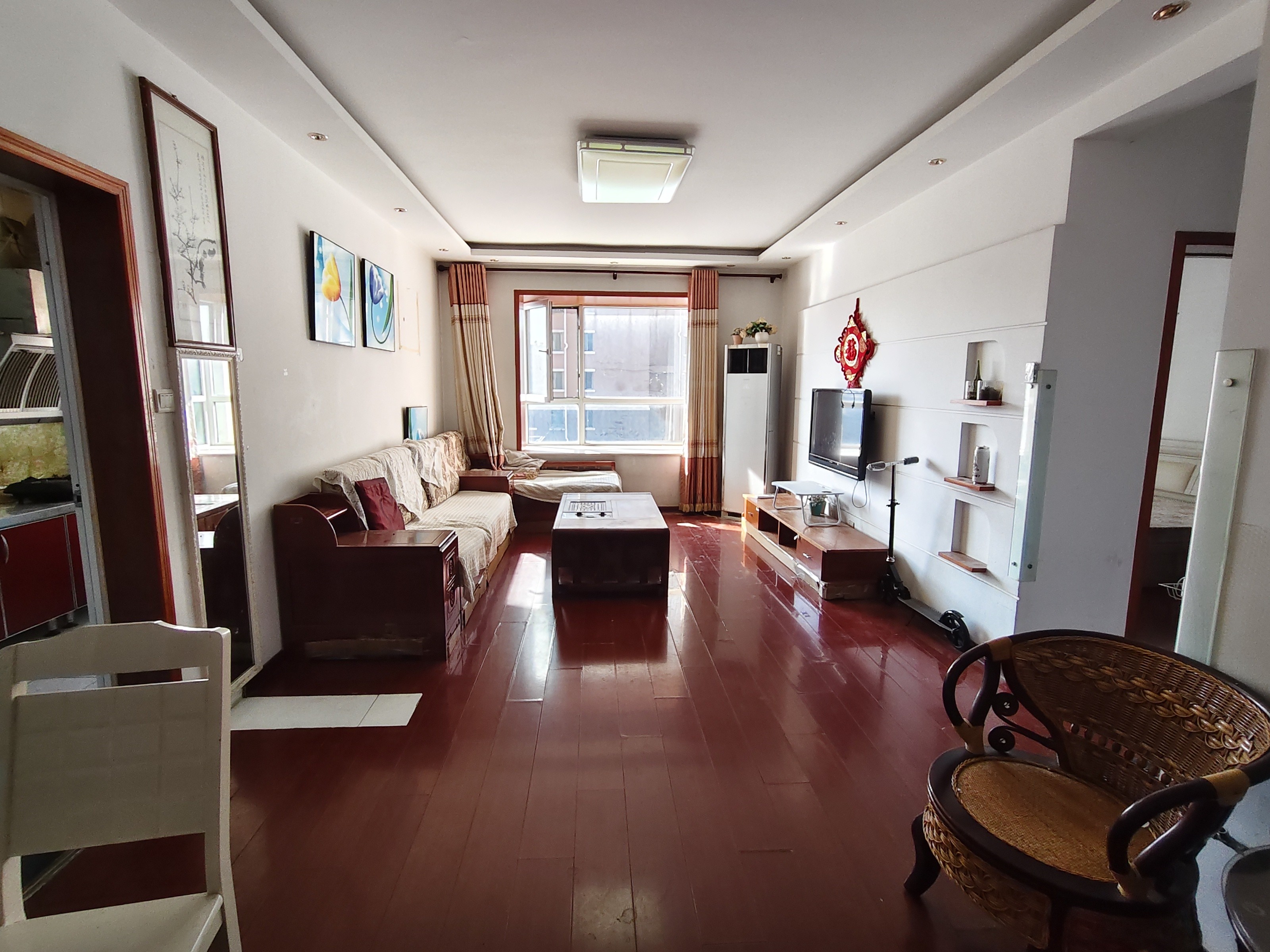 2、户型优势:2室2厅,南北卧室,客厅方正好用,单元对讲门,大院传达,安全性高!