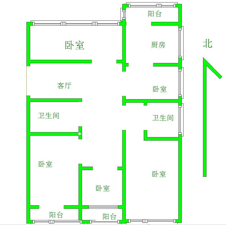 厅室3室2厅1卫1阳台