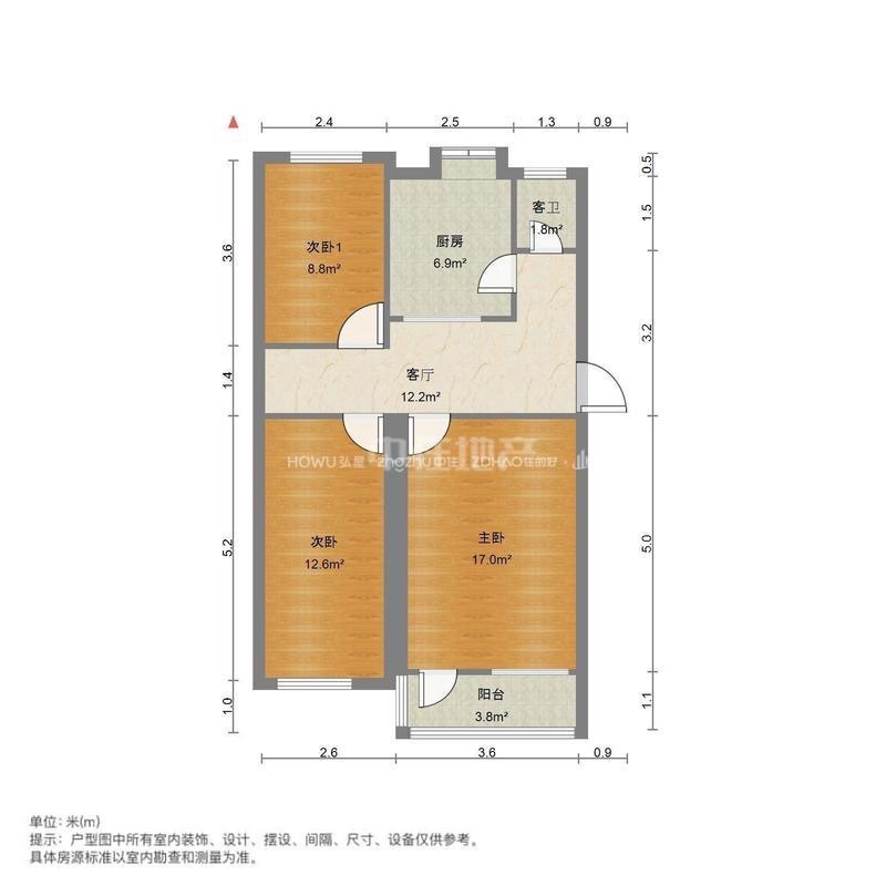 朝向南北 建筑面积68㎡