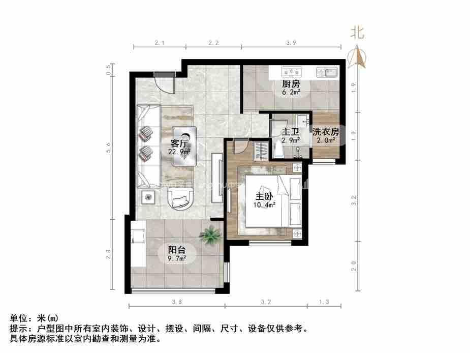 朝向南 建筑面积62㎡