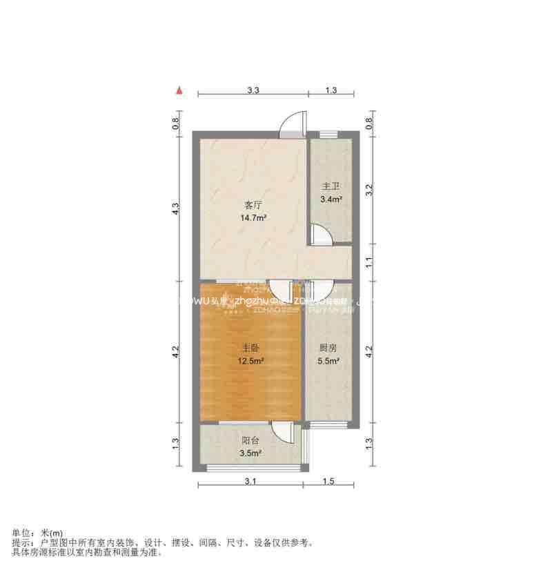厅室1室1厅1卫1阳台