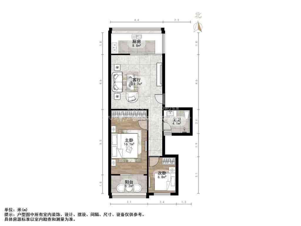 朝向南北 建筑面积80㎡