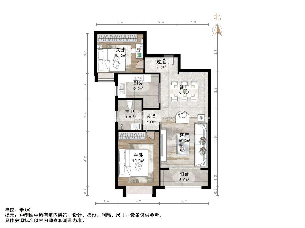 朝向南北 建筑面积89㎡