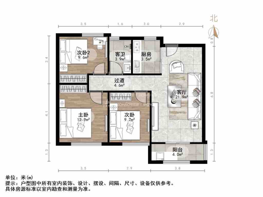 朝向南北 建筑面积97㎡