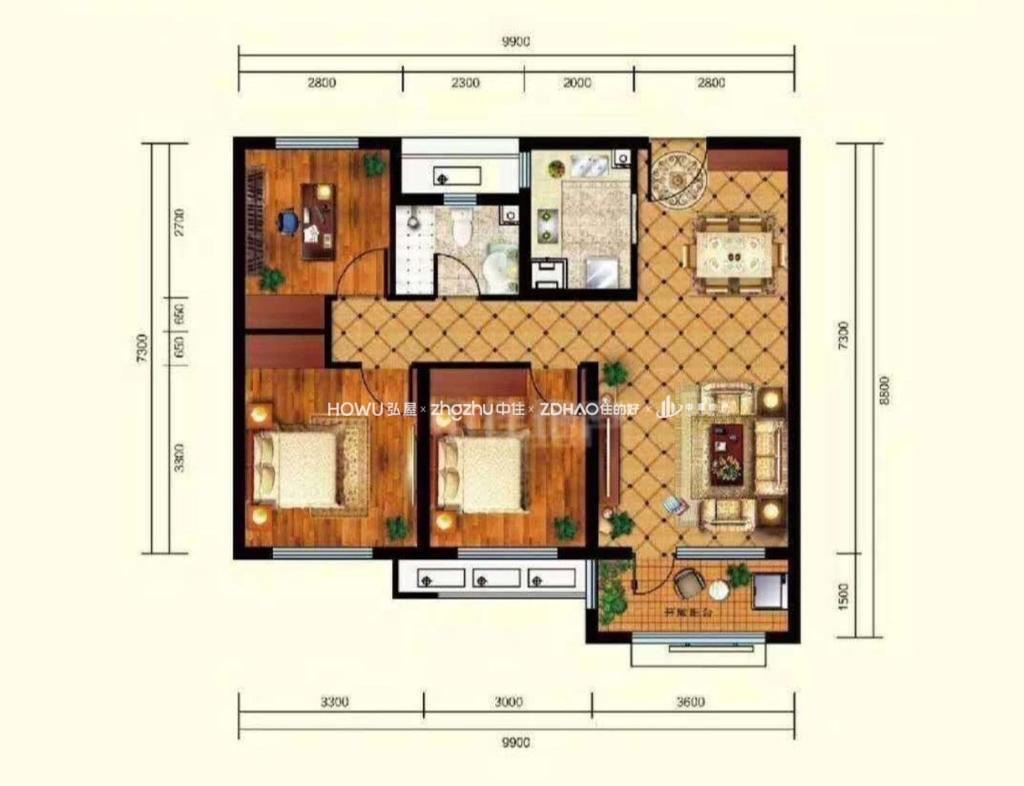 厅室3室2厅1卫1阳台