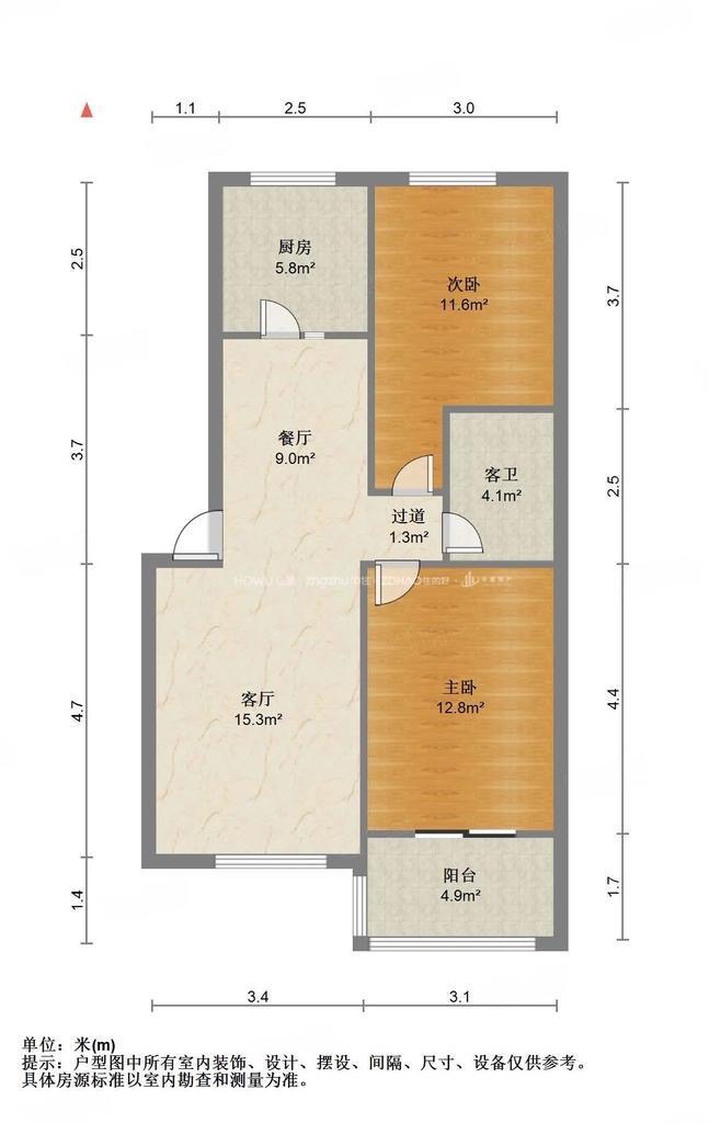 朝向南北 建筑面积80㎡