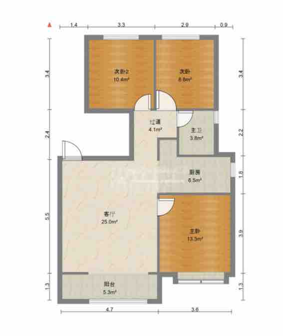 厅室3室2厅1卫1阳台
