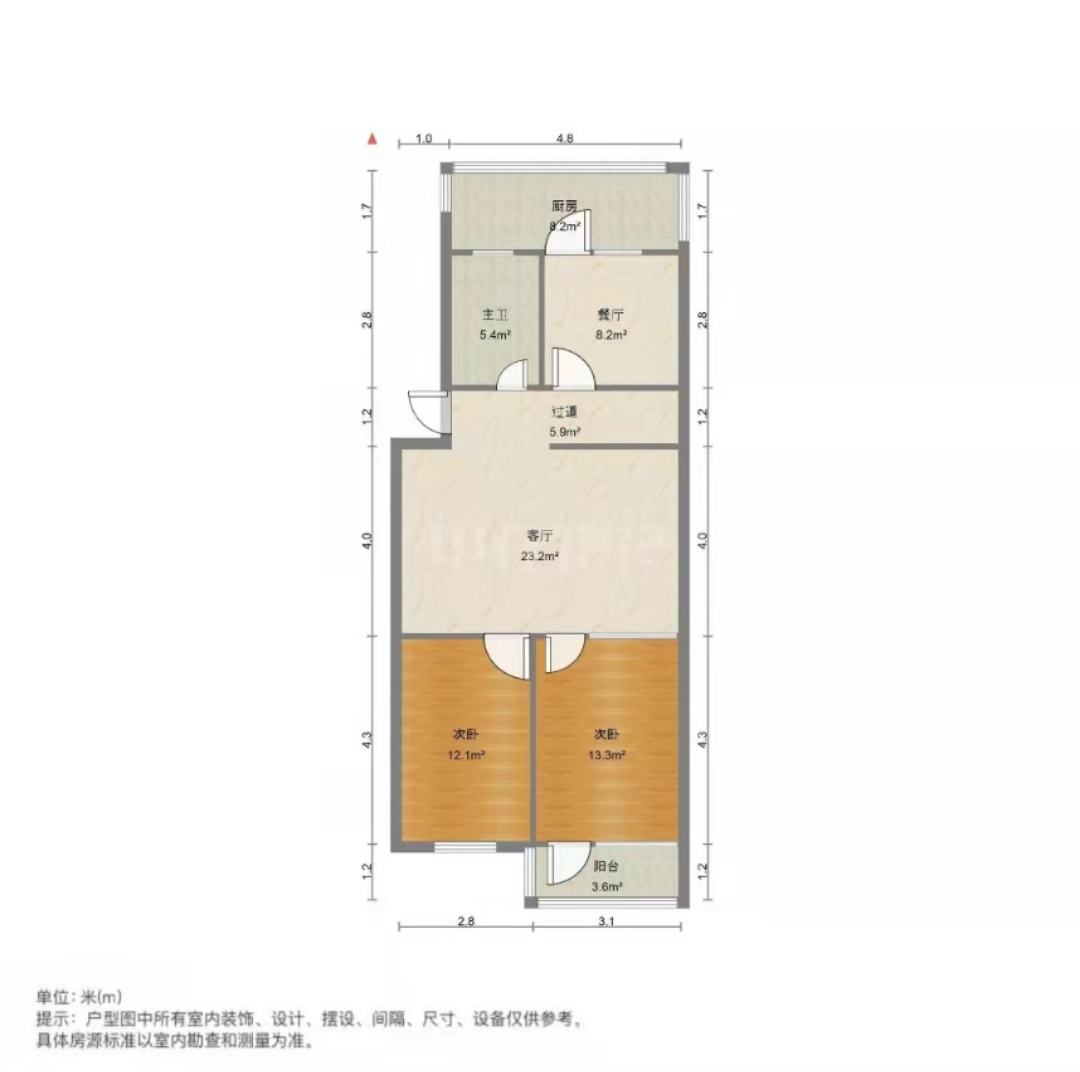 朝向南北 建筑面积105㎡