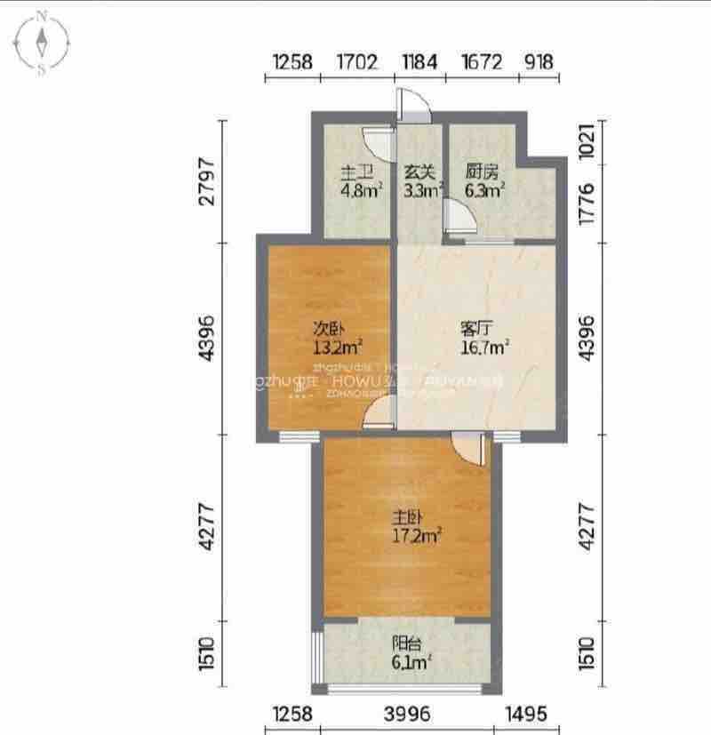 厅室2室2厅1卫1阳台