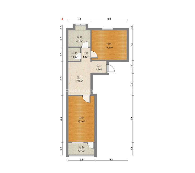 朝向南北 建筑面积54.38㎡
