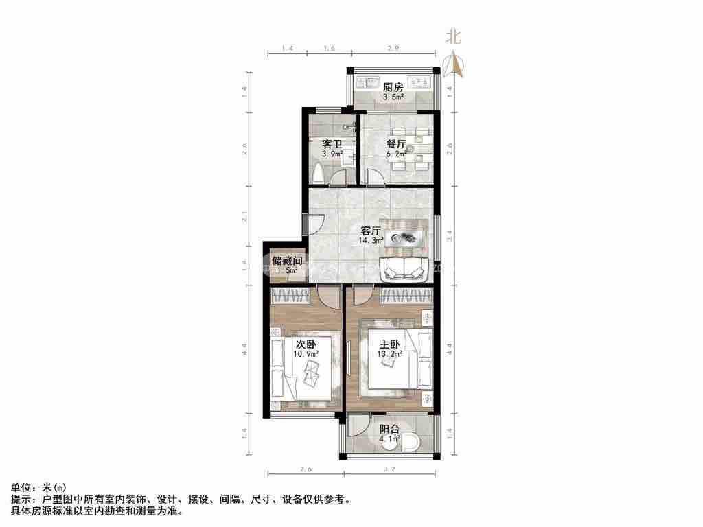 2、户型优势:南北卧室,客厅方正好用,单元对讲门,大院传达,安全性高!