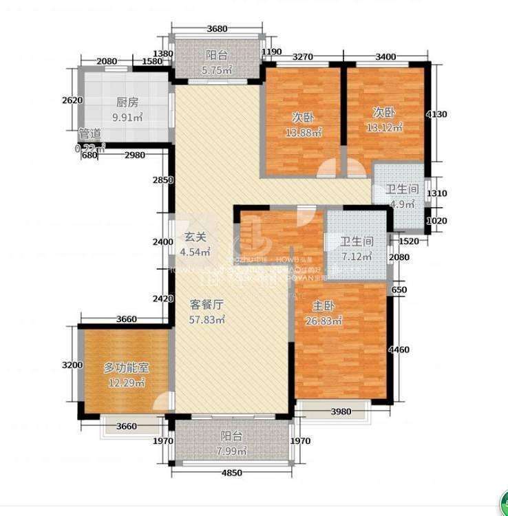 厅室4室2厅2卫1阳台