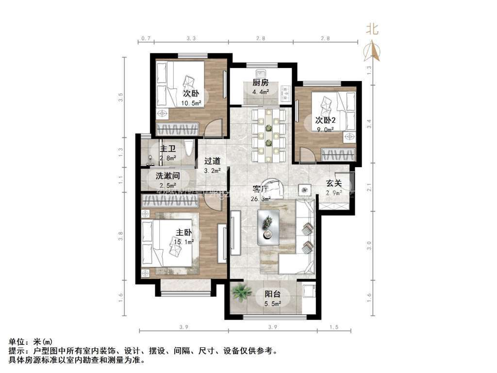 厅室3室2厅1卫1阳台