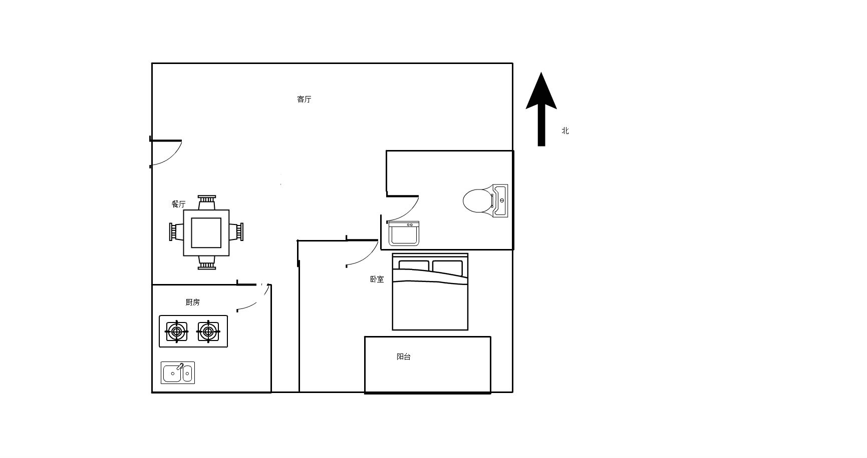 厅室1室1厅1卫1阳台