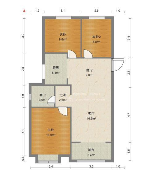 厅室3室2厅1卫1阳台