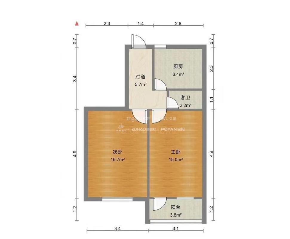 厅室2室0厅1卫1阳台