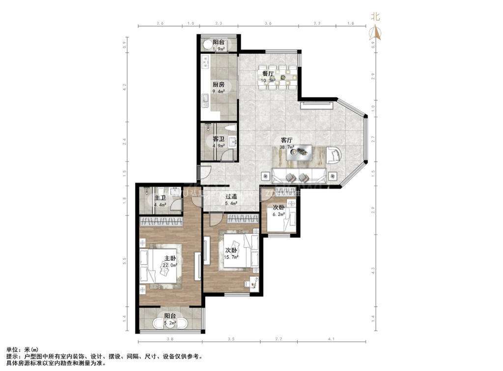 厅室3室2厅2卫1阳台