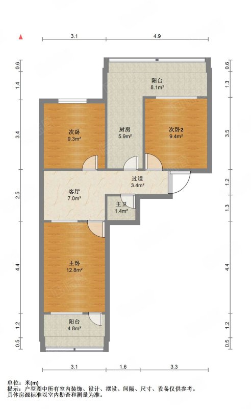 厅室3室1厅1卫1阳台