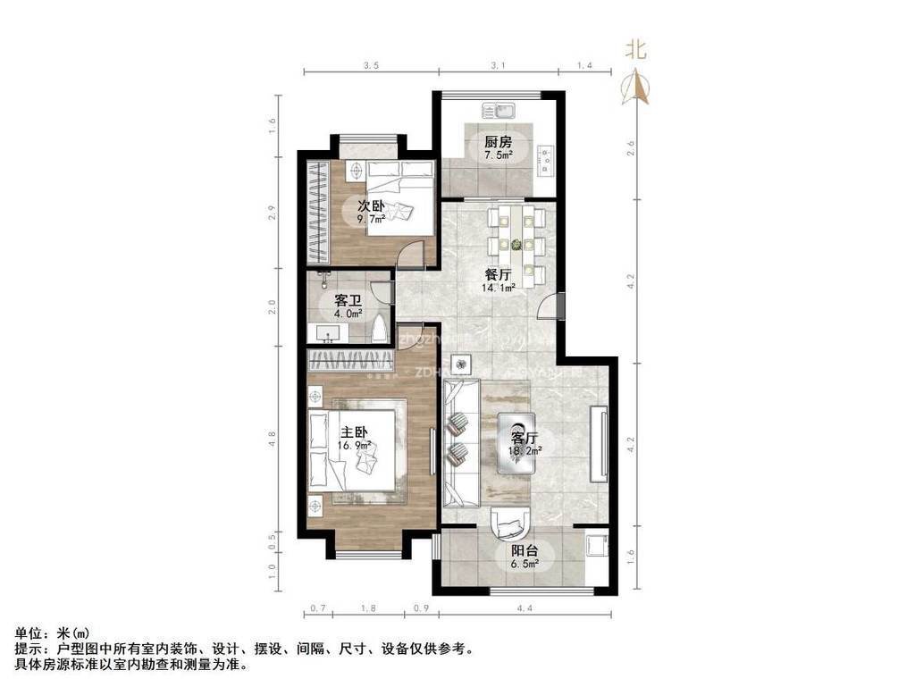 朝向南北 建筑面积99.85㎡