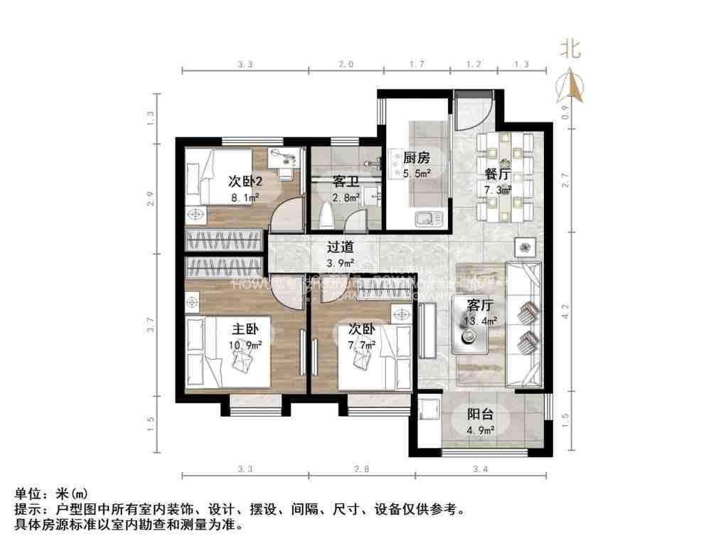朝向南北 建筑面积100㎡
