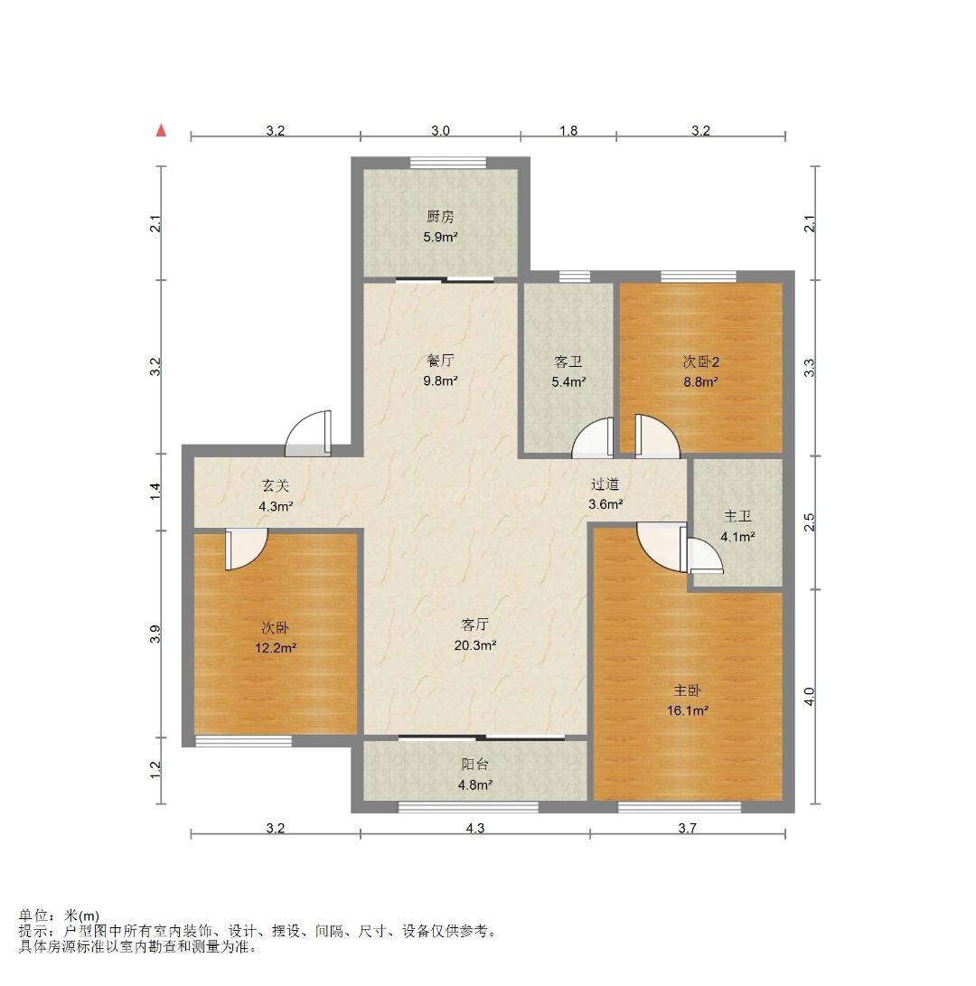 厅室3室2厅2卫1阳台
