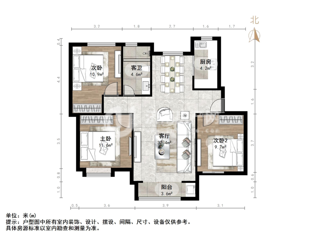 厅室3室2厅2卫0阳台