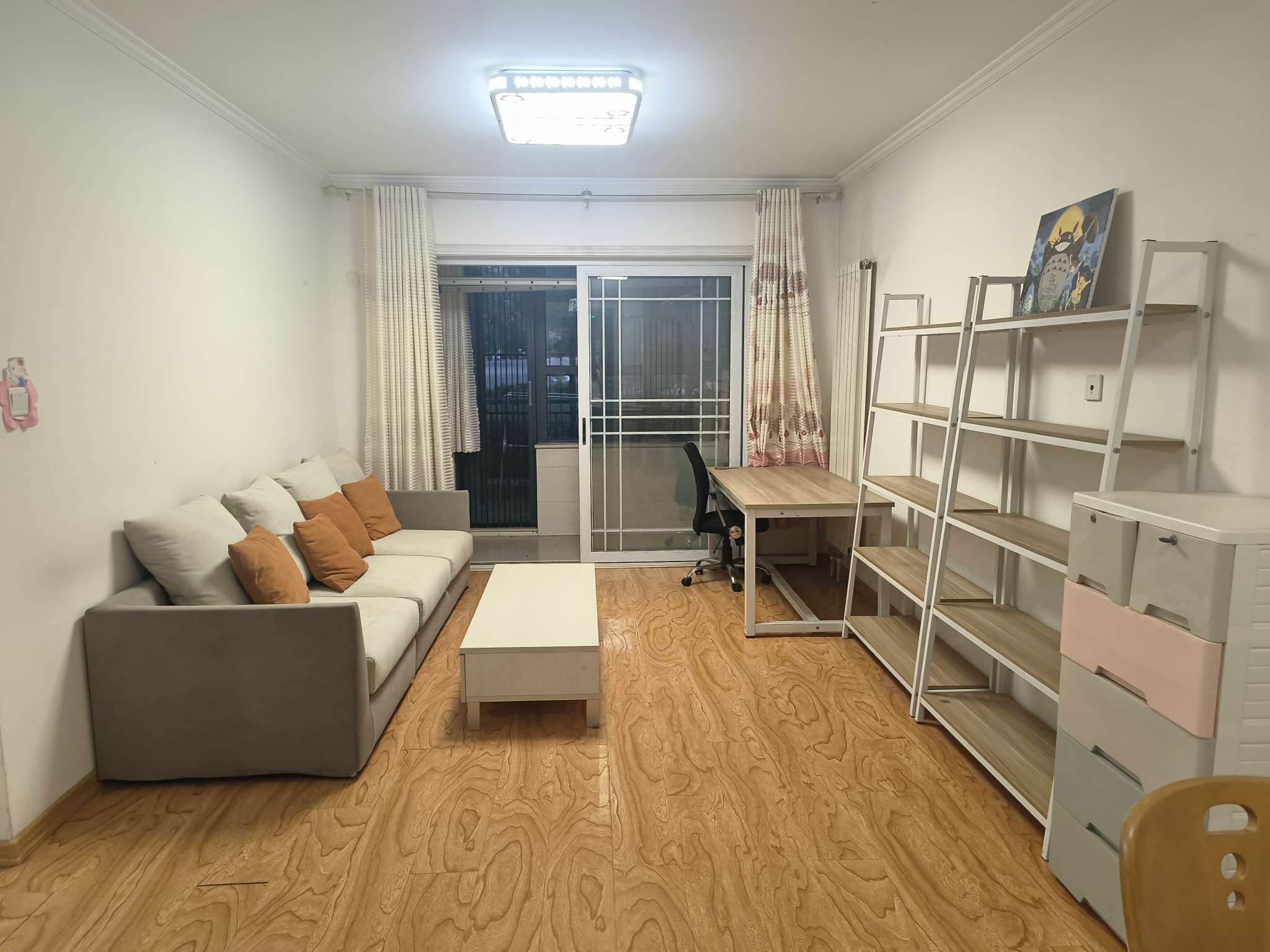 三室精装,有空调,沙发,床,油烟机,灶具,车位一个。中间楼层