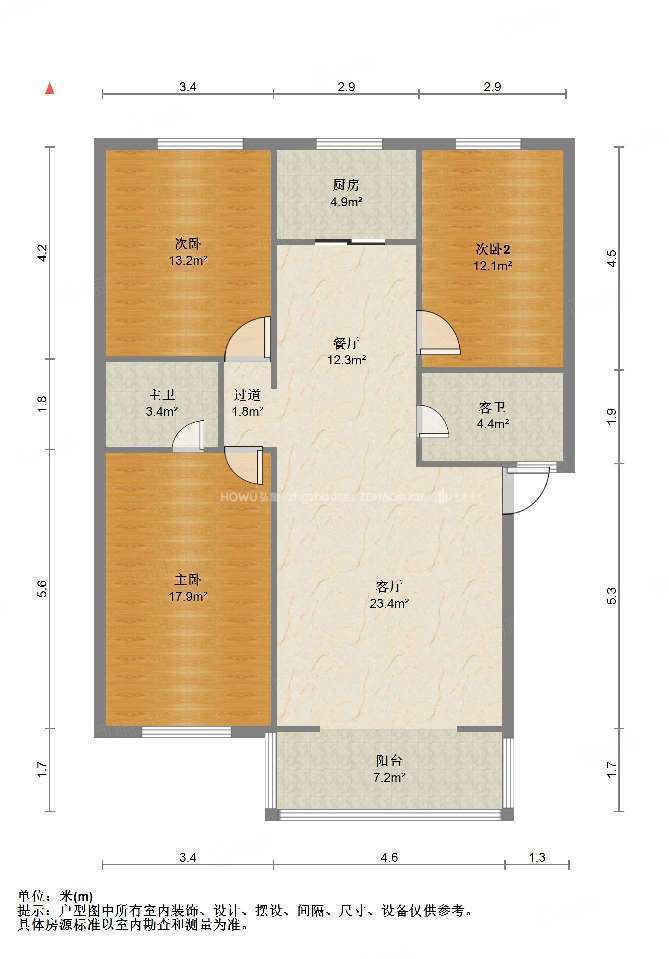 厅室3室2厅1卫1阳台