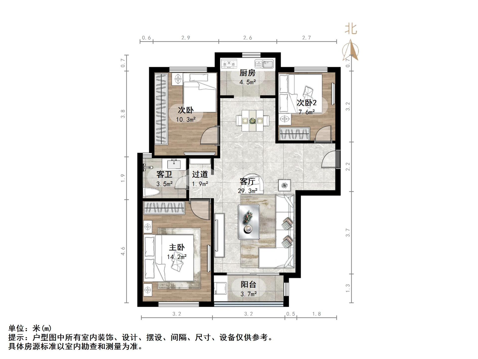朝向南北 建筑面积108㎡