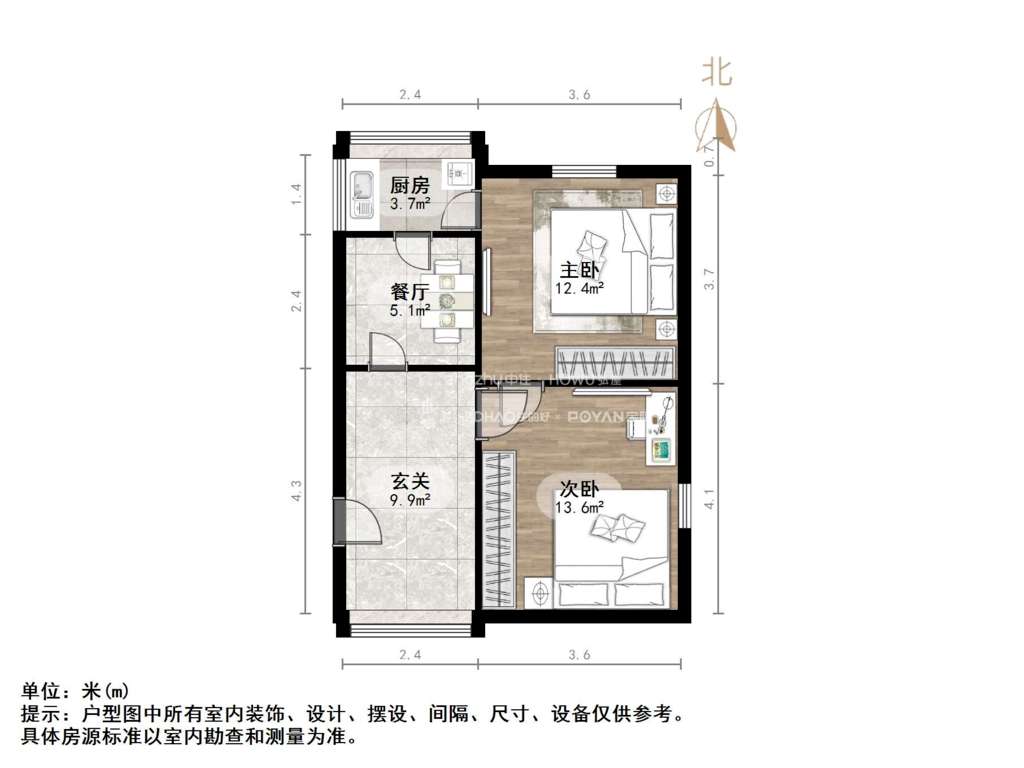 2、户型优势:南北卧室,客厅方正好用,单元对讲门,大院传达,安全性高!