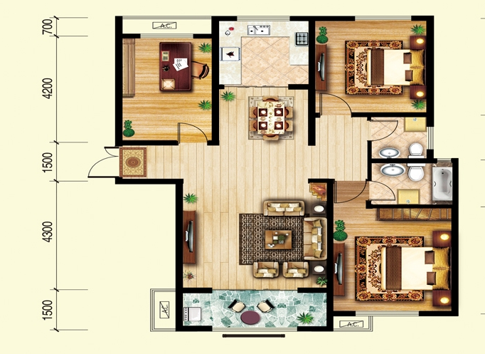厅室3室2厅1卫1阳台