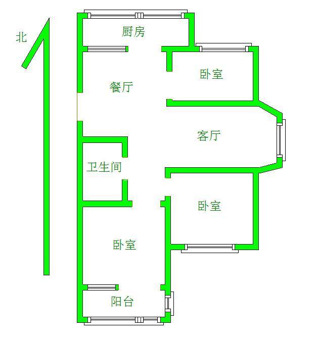 厅室3室2厅1卫1阳台