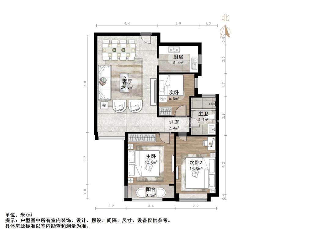 厅室3室2厅1卫1阳台