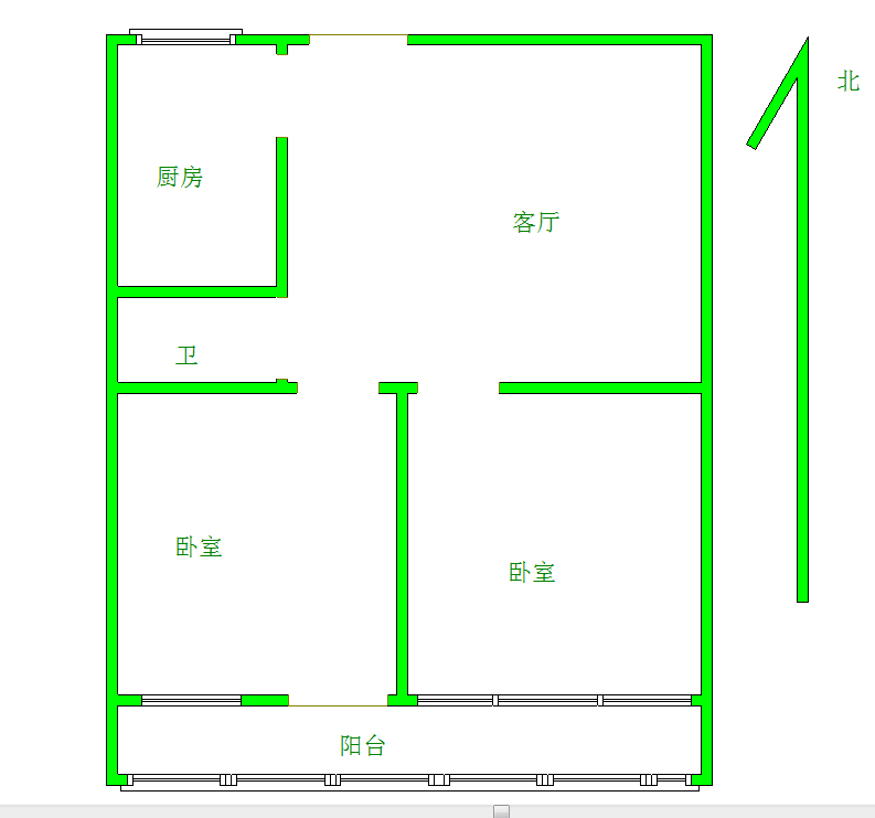 厅室2室1厅1卫1阳台