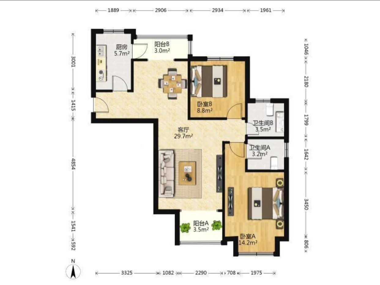 厅室2室2厅2卫1阳台