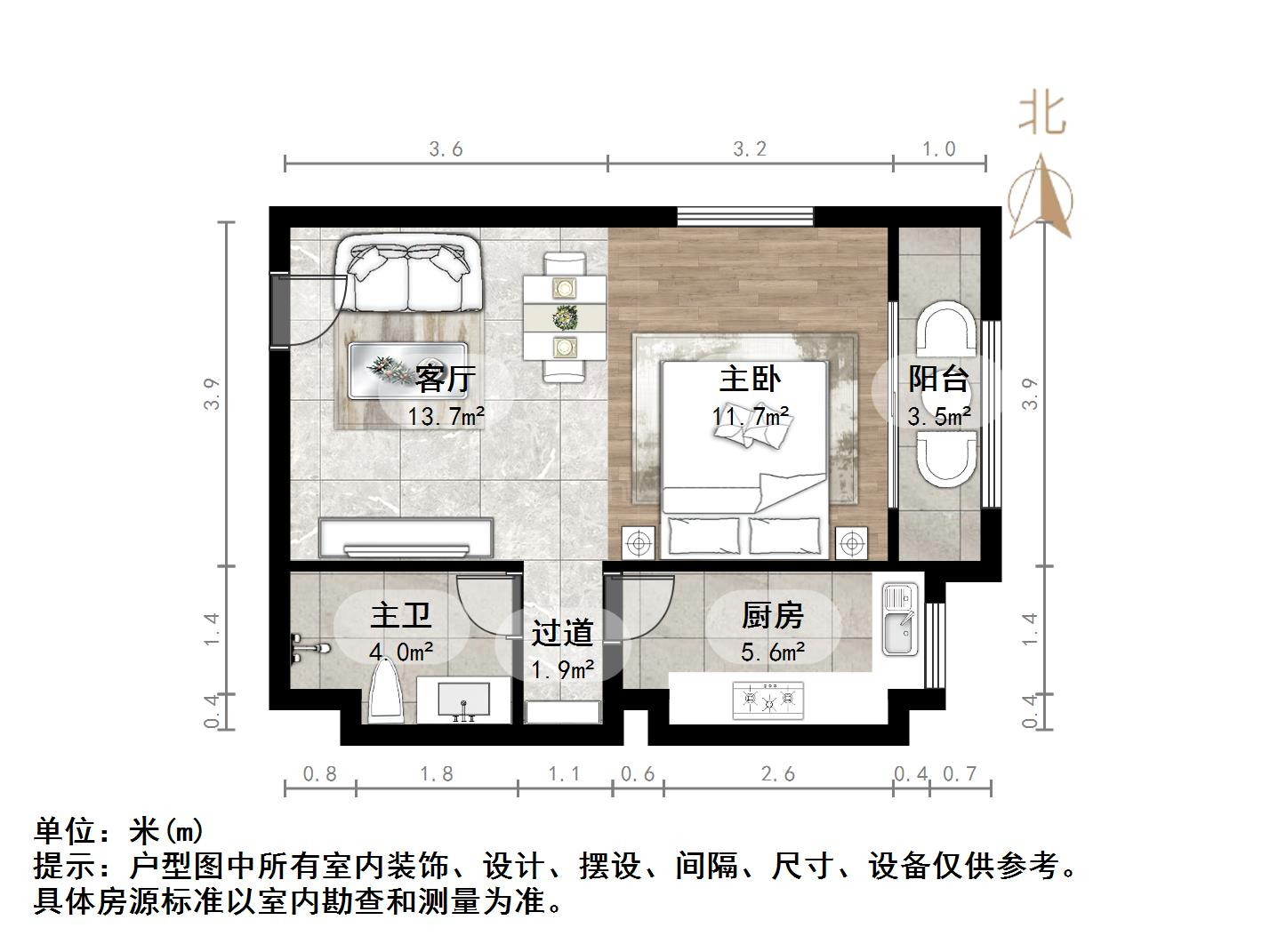 厅室1室1厅1卫1阳台