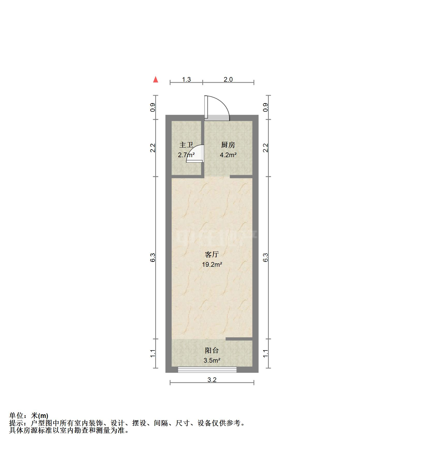 厅室1室1厅1卫1阳台