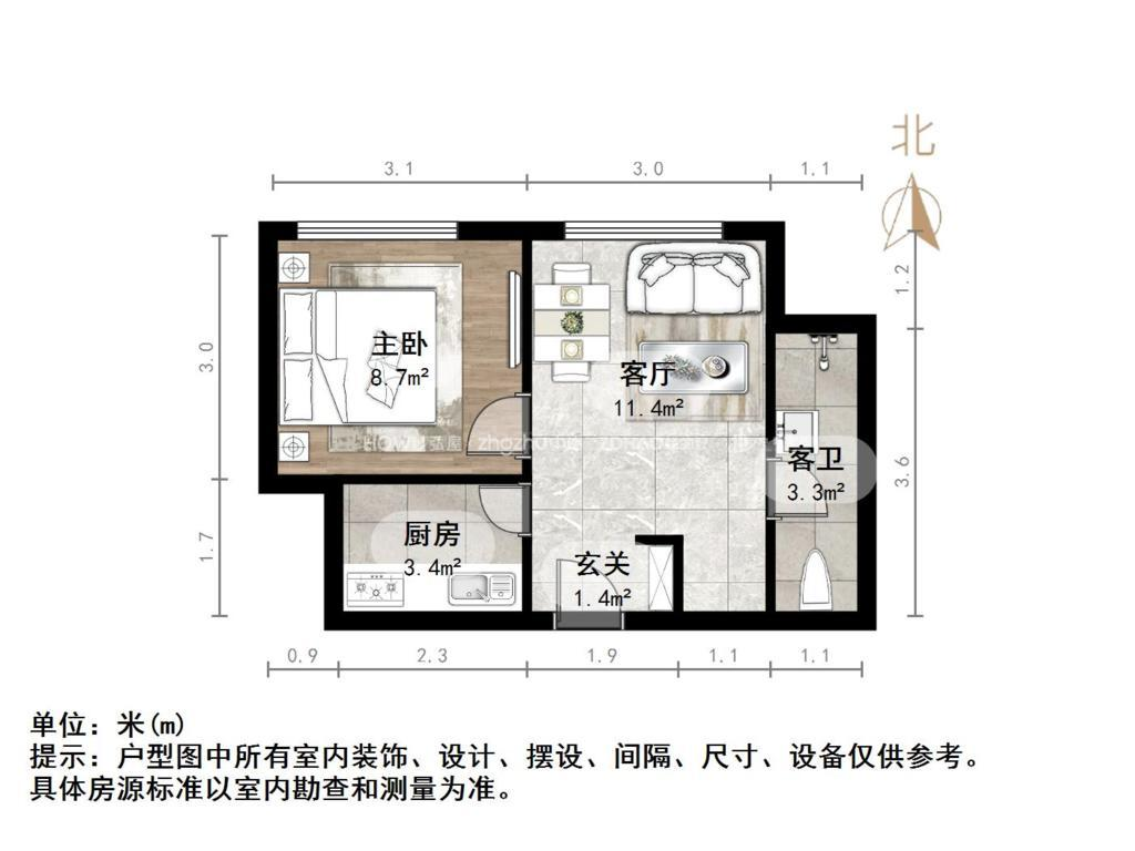 2、户型优势:1室1厅,南北卧室,客厅方正好用,单元对讲门,安全性高!