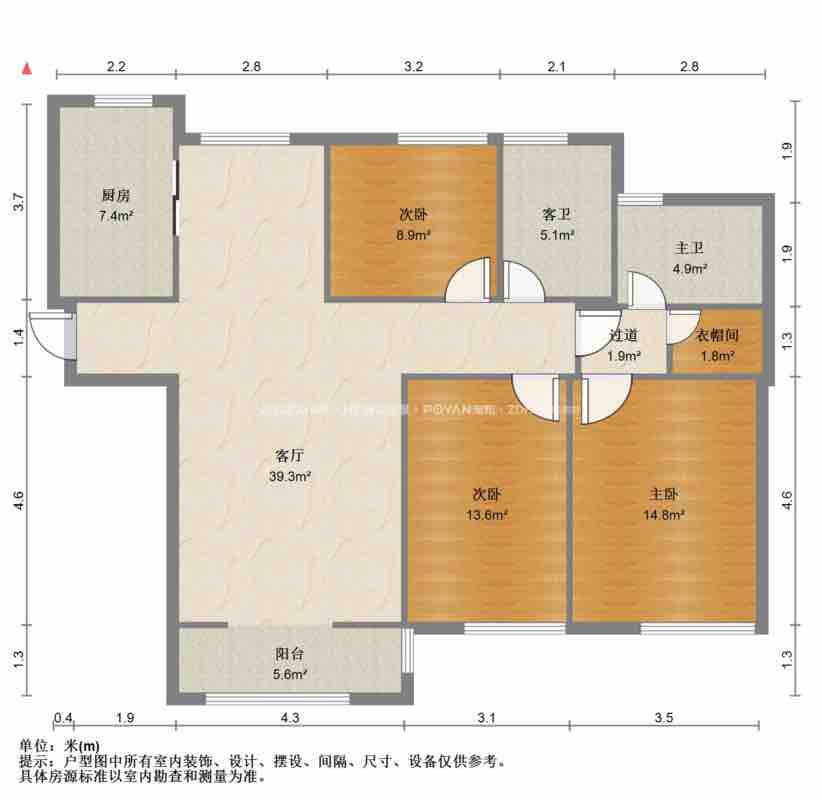 厅室3室2厅2卫1阳台