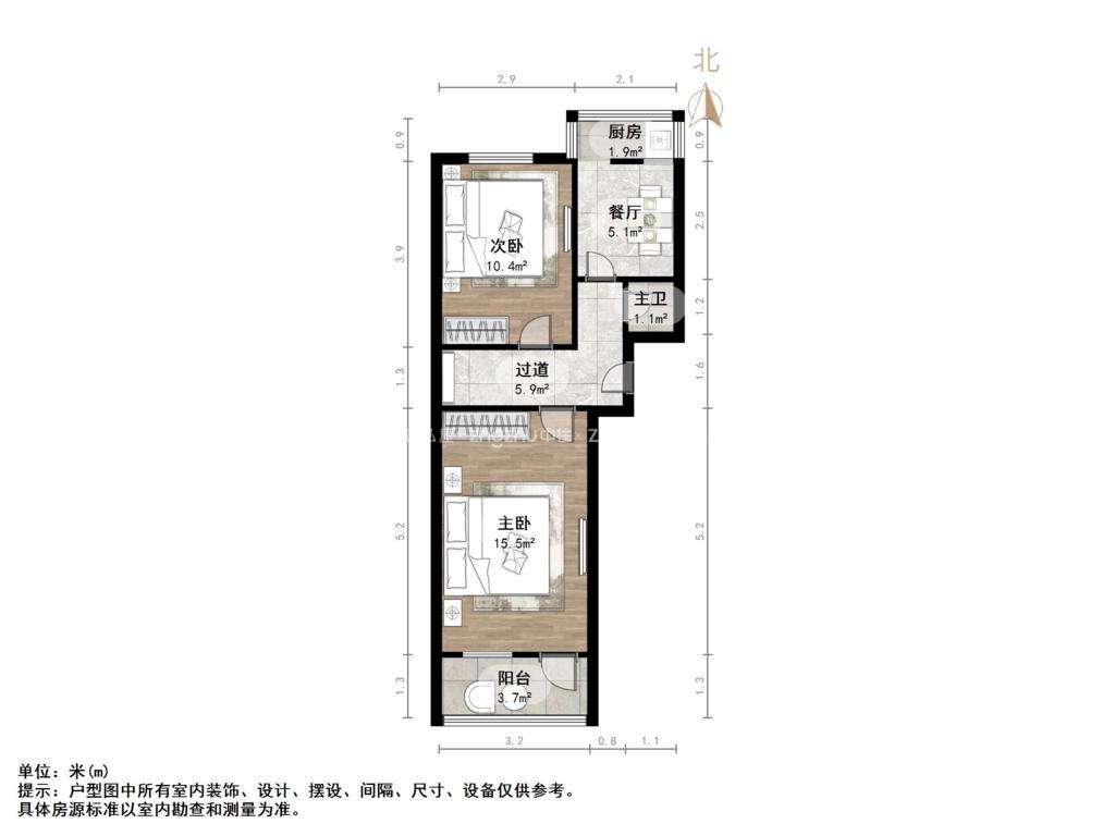 厅室2室1厅1卫1阳台