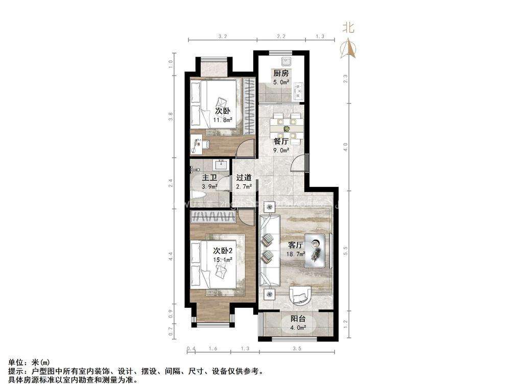 2、户型优势:南北卧室,客厅方正好用,单元对讲门,大院传达,安全性高!