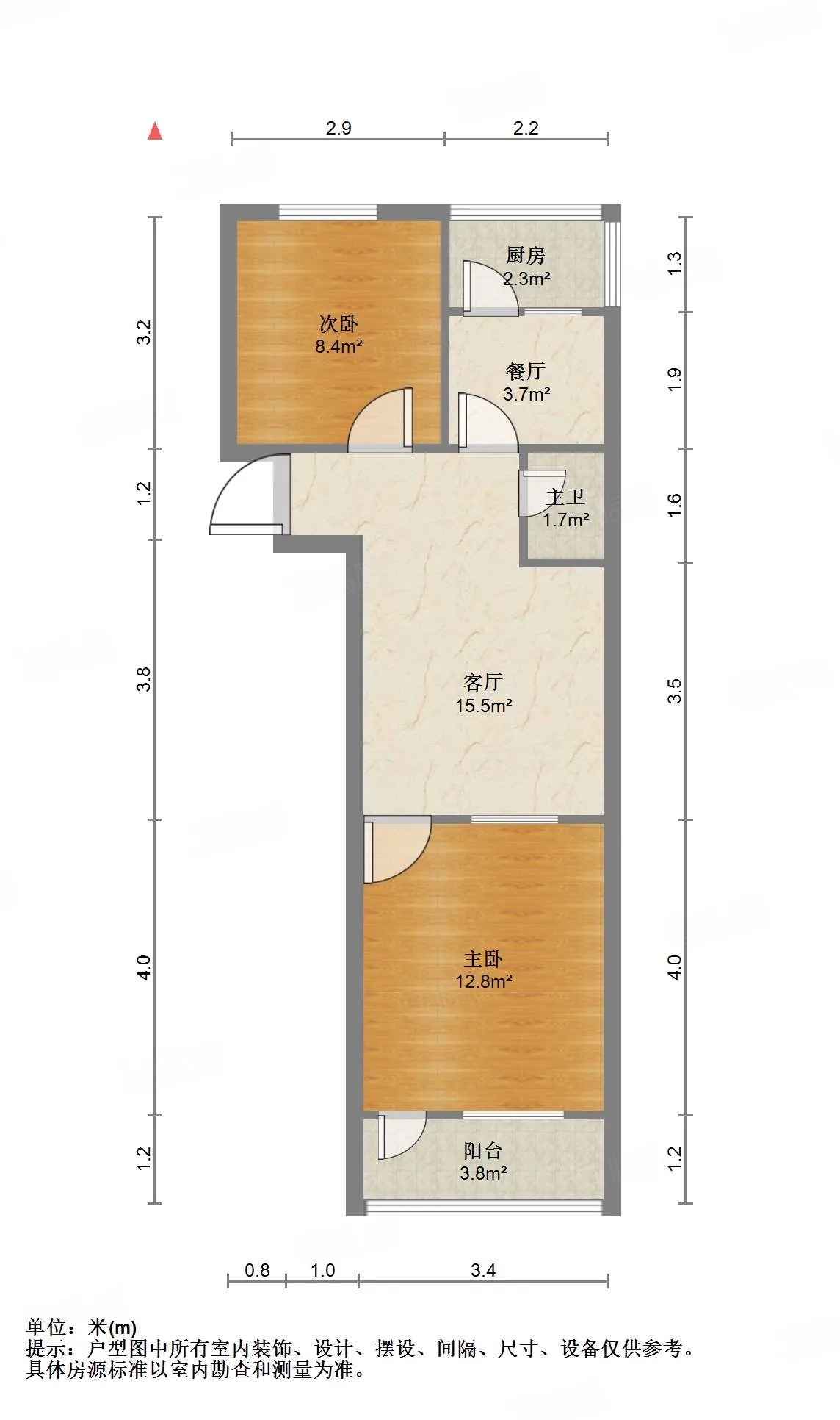 2、户型优势:2室1厅,南北卧室,客厅方正好用,单元对讲门,大院传达,安全性高!