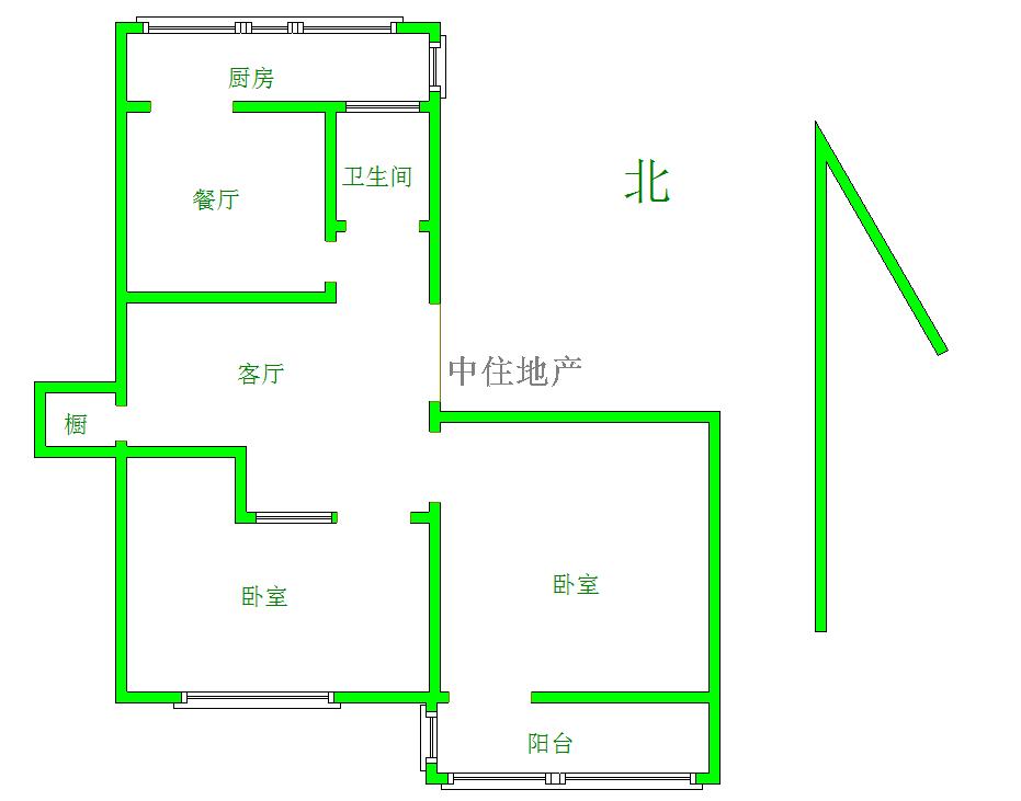2、户型优势:2室1厅,南北卧室,客厅方正好用,单元对讲门,大院传达,安全性高!