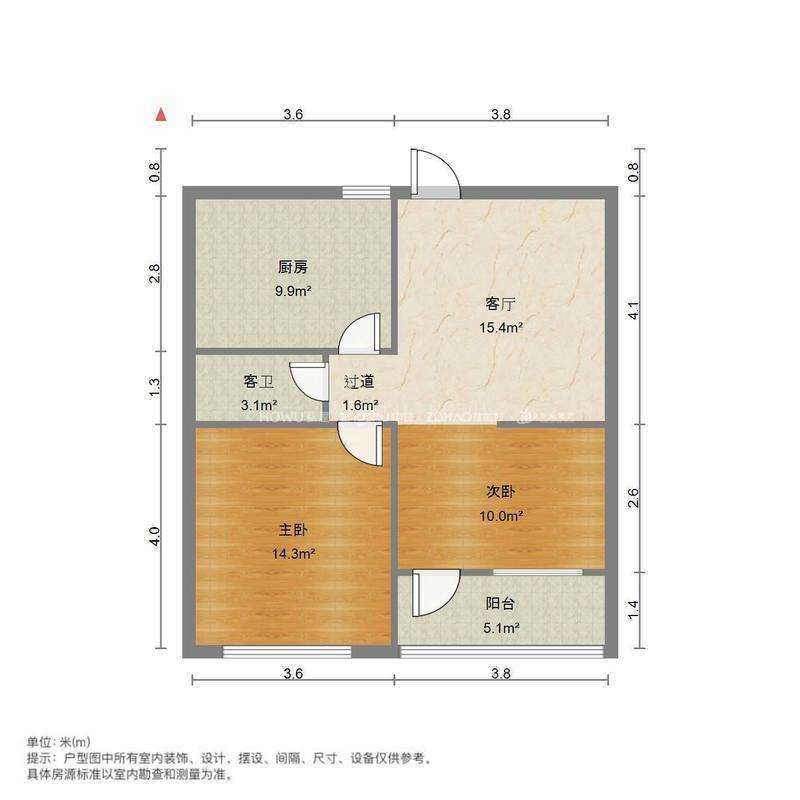 厅室2室1厅1卫1阳台