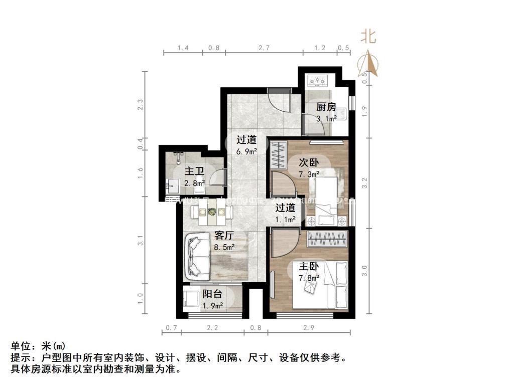 南北卧室,客厅方正好用,单元对讲门,大院传达,安全性高!