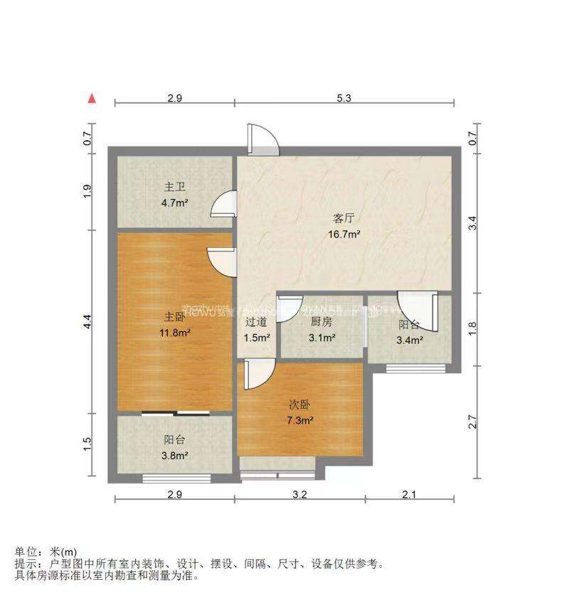 厅室2室1厅1卫1阳台
