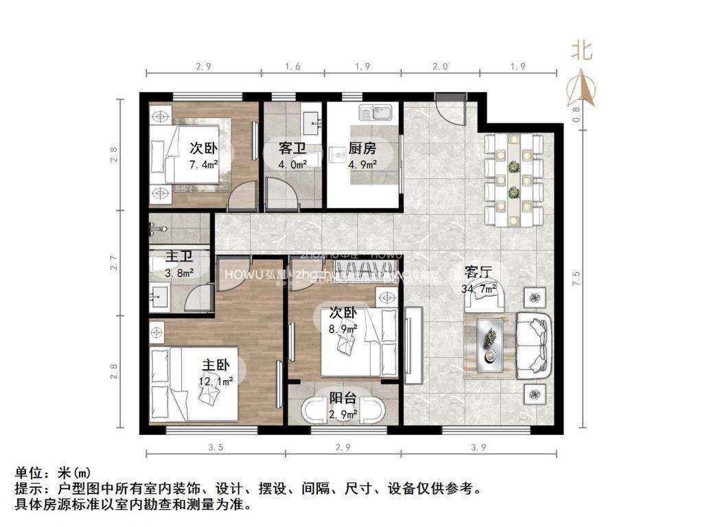 朝向南北 建筑面积117㎡