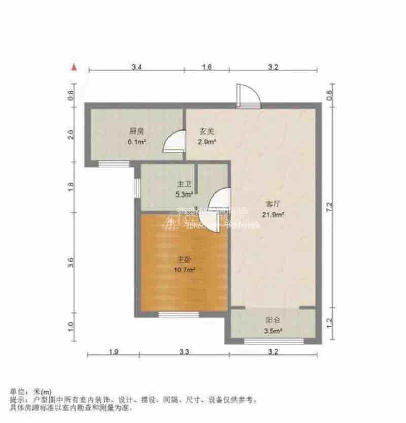 厅室1室2厅1卫1阳台